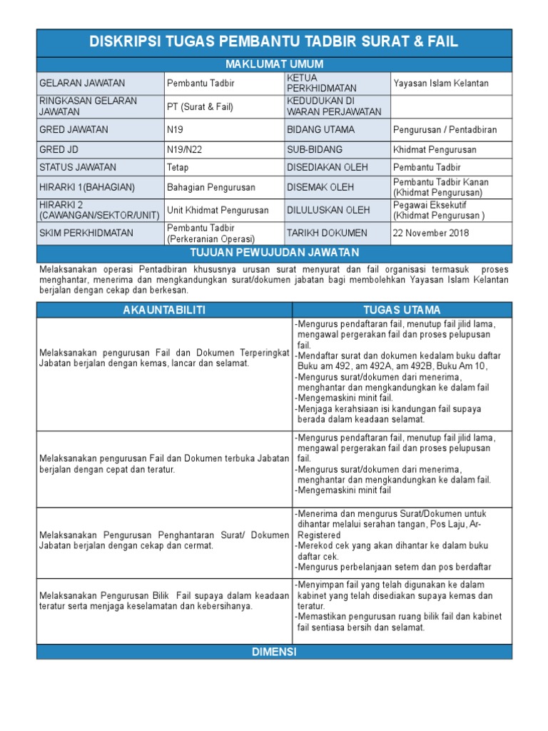 Pembantu Veterinar Gred G19. Deskripsi Tugas Pembantu Tadbir Gred N19. Terdapat beberapa jenis kategori fail iaitu.